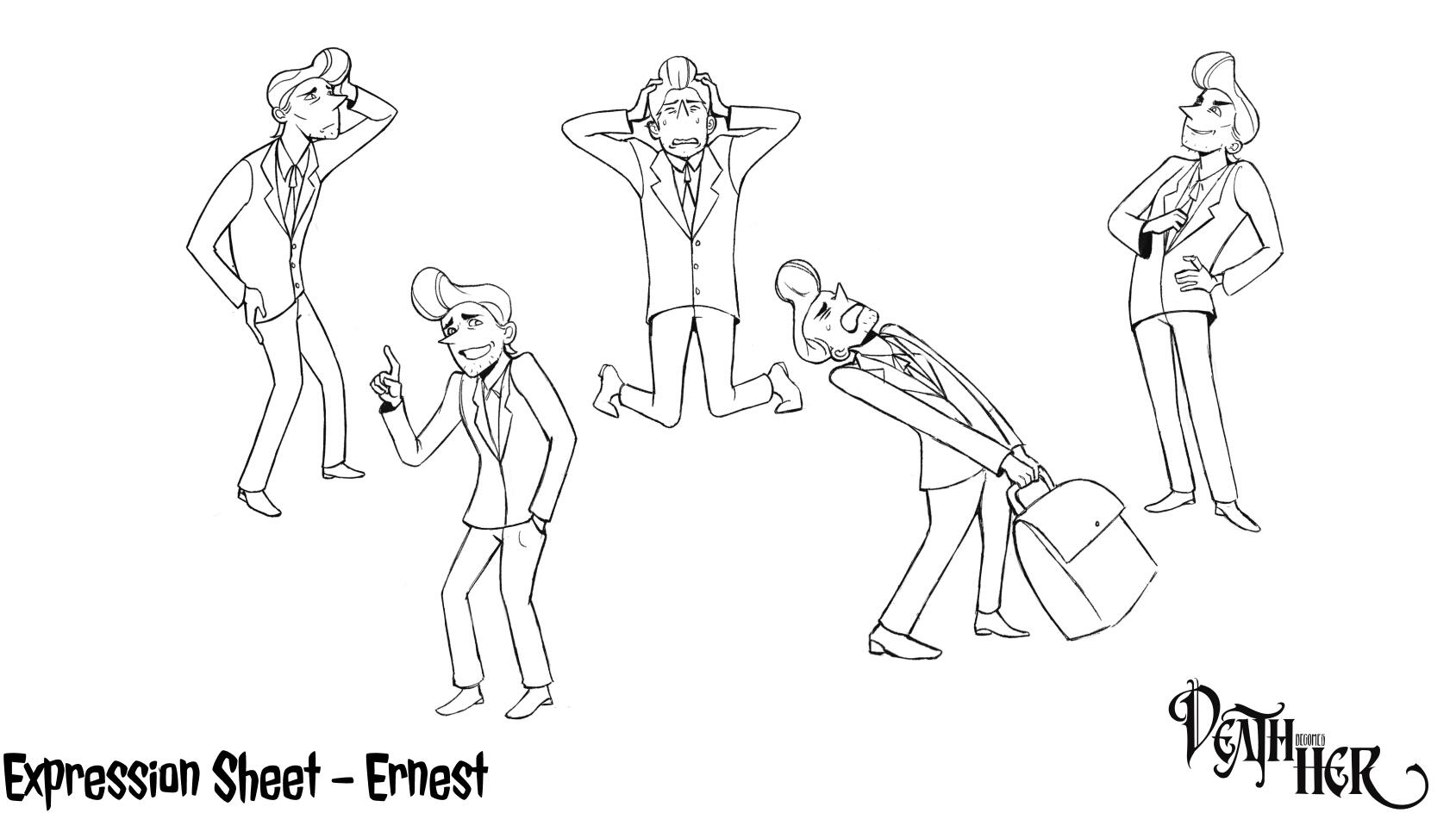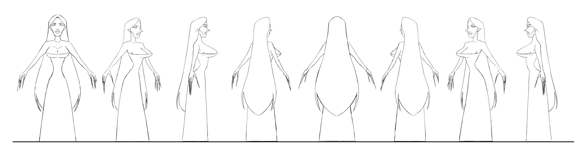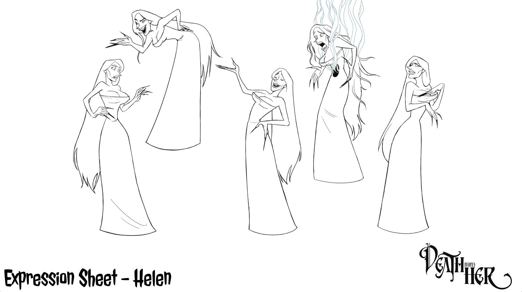contributions towards a group project to create character designs based on the 2020 musical Death Becomes her